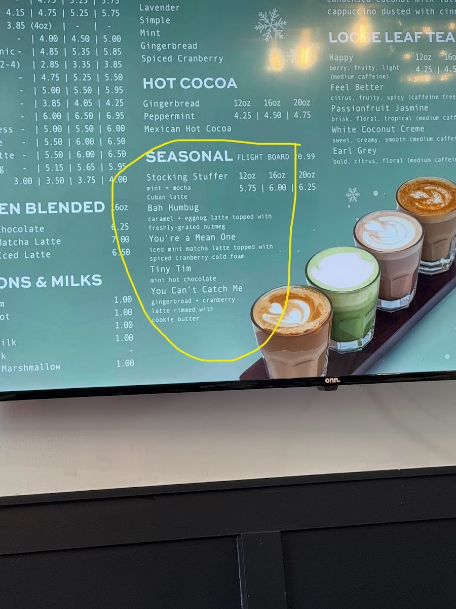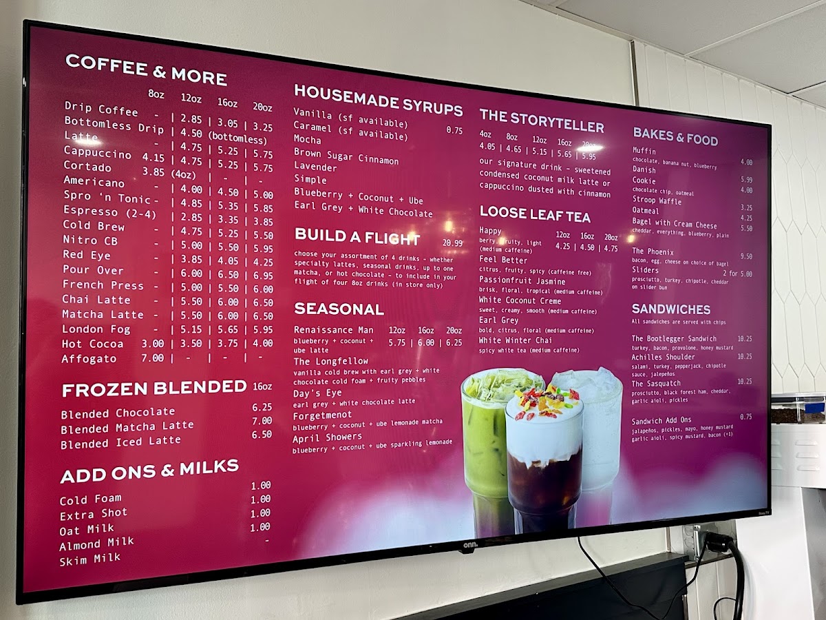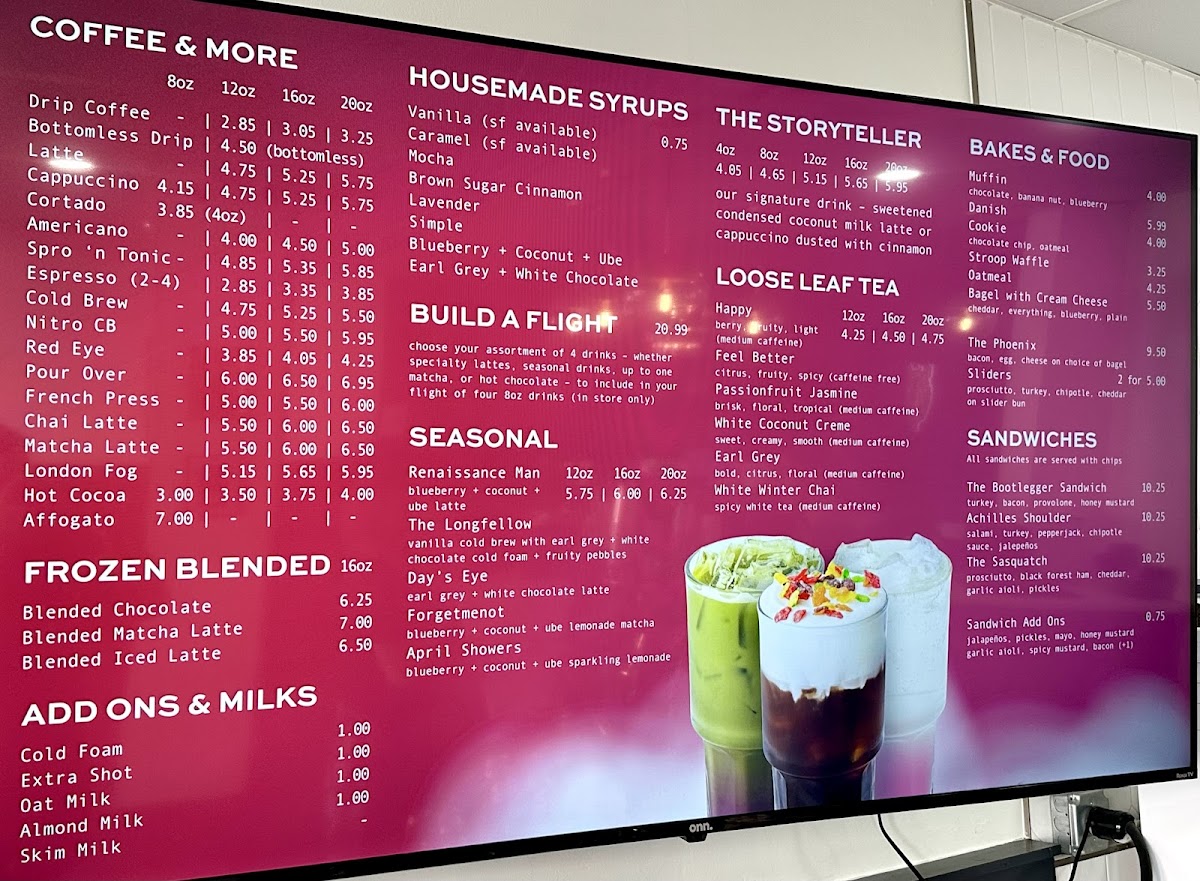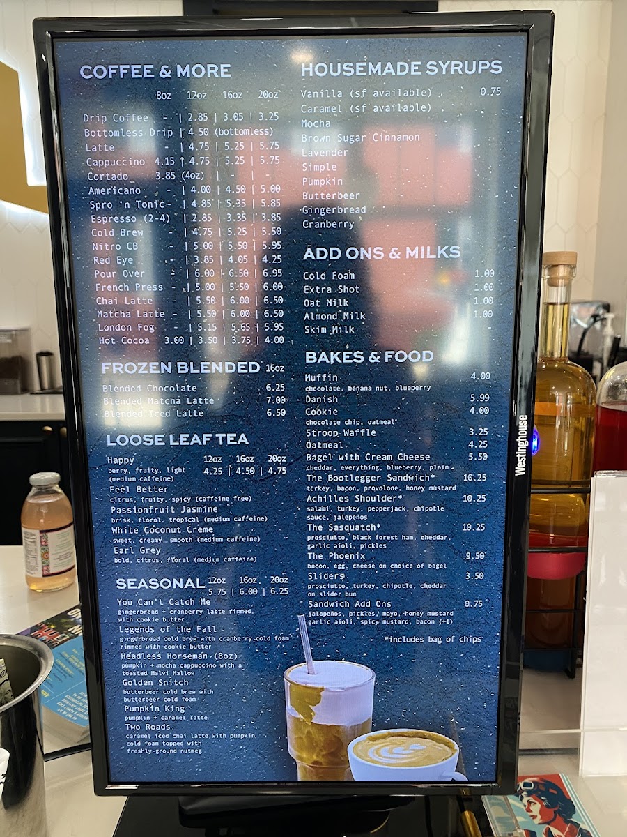 Visitors can expect to find offerings suitable for quick orders or casual enjoyment within a coffee shop setting. The menu primarily focuses on crafted beverages, with an emphasis on specialty coffee drinks, seasonal creations, and premium teas.
